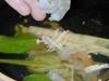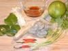Start boiling the water in a 2 quart pot. Peel and devein the shrimp and set them aside. Cut lemon grass into pieces, 5-6 inches long. Use the back of your knife to pound the lemon grass, just to bruise it to release the flavor. If you want, you can tie the lemon grass into a knot to make it easier to manage. Drop the lemon grass in water and let boil for 5 minutes.